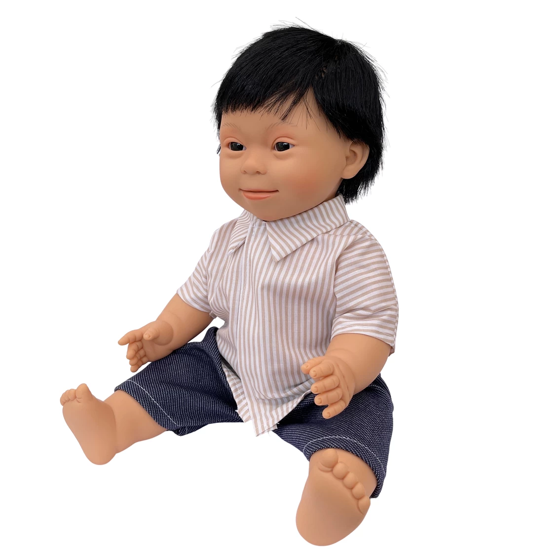 Featuring smooth, brushable hair, bright, clear eyes and a deliciously soft ‘skin’, these beautiful, anatomically correct dolls with Down syndrome foster inclusion, acceptance and love. Made in Spain, and measuring 38cm long, they have moveable limbs, allowing them to sit upright or lay down, bringing authenticity to imaginative play.