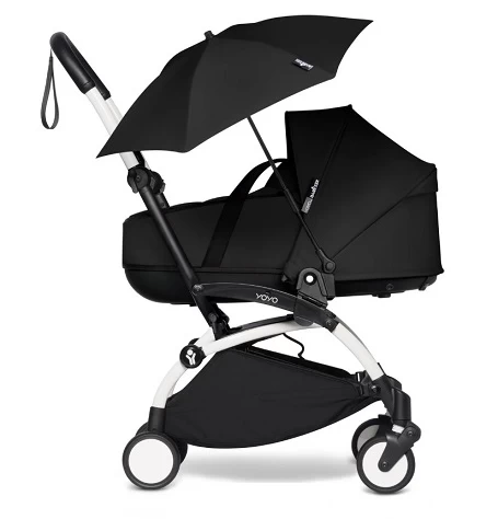 BABYZEN YOYO Parasol adapts to all versions of YOYO (newborn pack, bassinet, and 6+ pack) and can also clip onto the car seat.