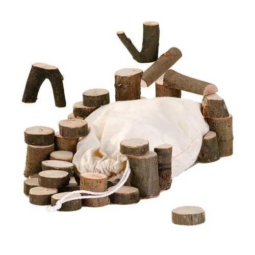 Our gorgeous set of branch-wood blocks are an absolute childhood staple. With endless play possibilities, their unique and natural form brings creativity, warmth and beauty to block and small world play. Children will delight in the organic shapes in their collection, which includes cylinders, half cylinders, discs, y-shaped and angular pieces, in various sizes.