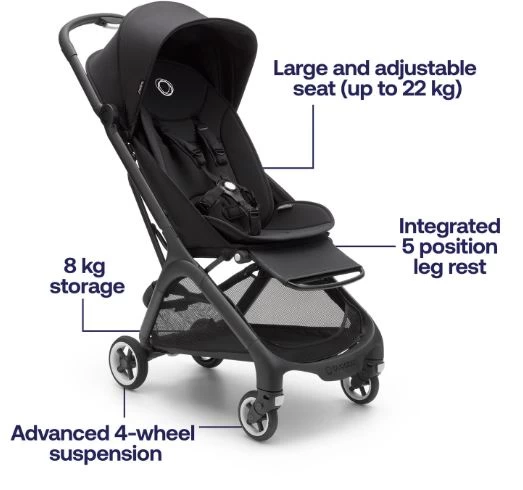 The Bugaboo Butterfly travel pram is lightweight, easy to maneuver, yet super sturdy for wherever adventure takes you and your growing baby.