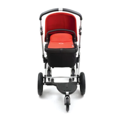The well-known original Bugaboo Wheeled Board has been redesigned into the Bugaboo Comfort Wheeled Board to assure extra comfort for both you and your child. The flexible board positioning – left or right from the center – creates extra walking space.