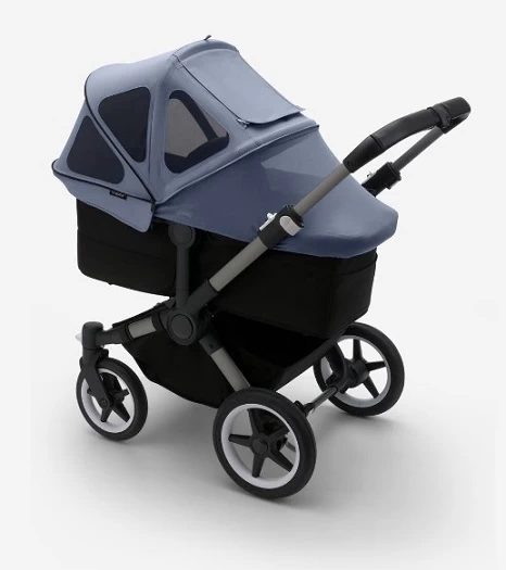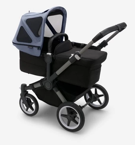 The Bugaboo Donkey Breezy Sun Canopy comes with UPF 50+ (except for in the mesh panels area).