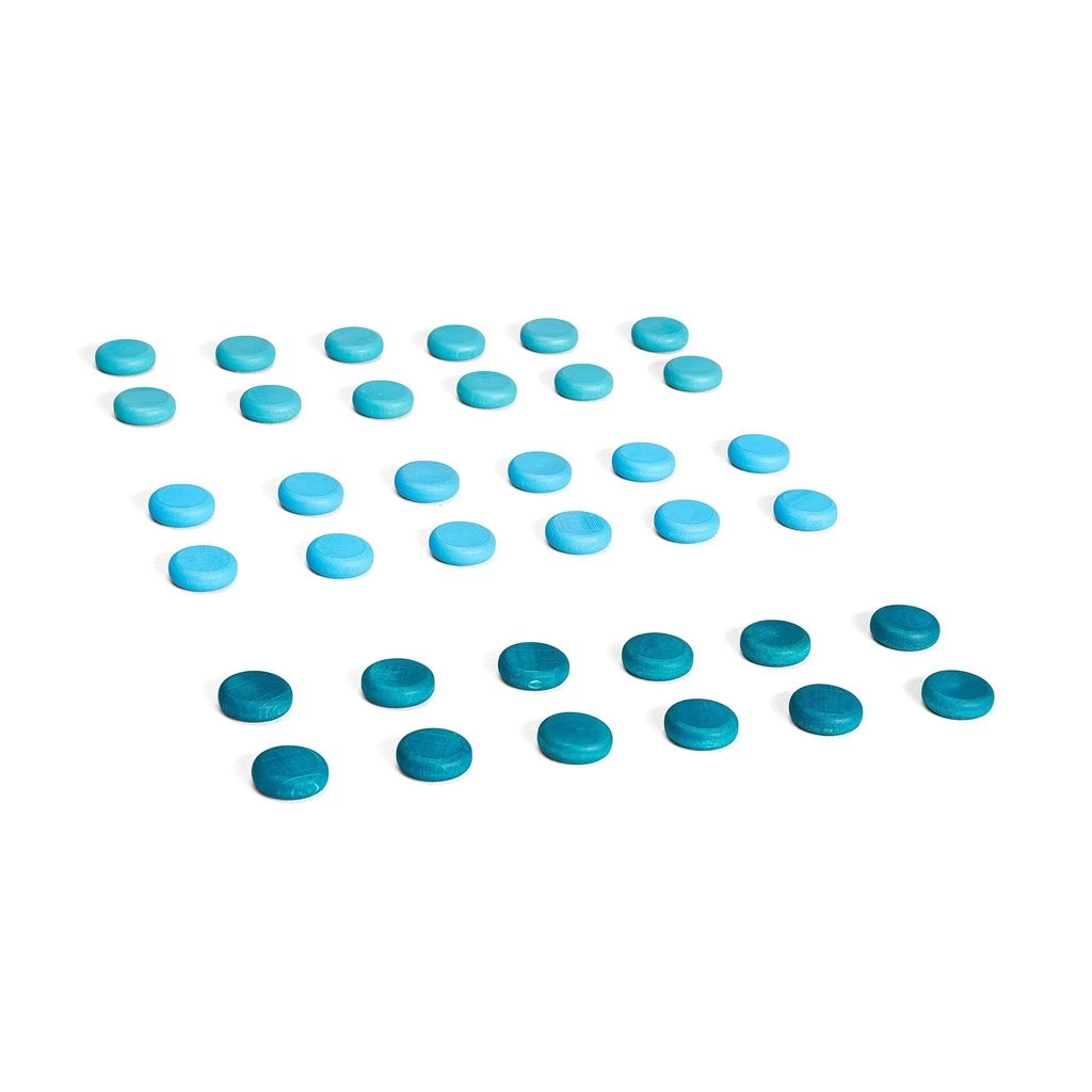 Transient artworks, mandalas and mathematical explorations are enhanced using our Grapat wooden collections – completely adaptable to the child’s phase of development – and they can be used in combination with other materials, such as building blocks, fabric, play dough or during home corner play. Crafted from sustainably sourced wood and coloured with non-toxic dyes, they measure approximately 3cm in diameter and come in a set of 36.