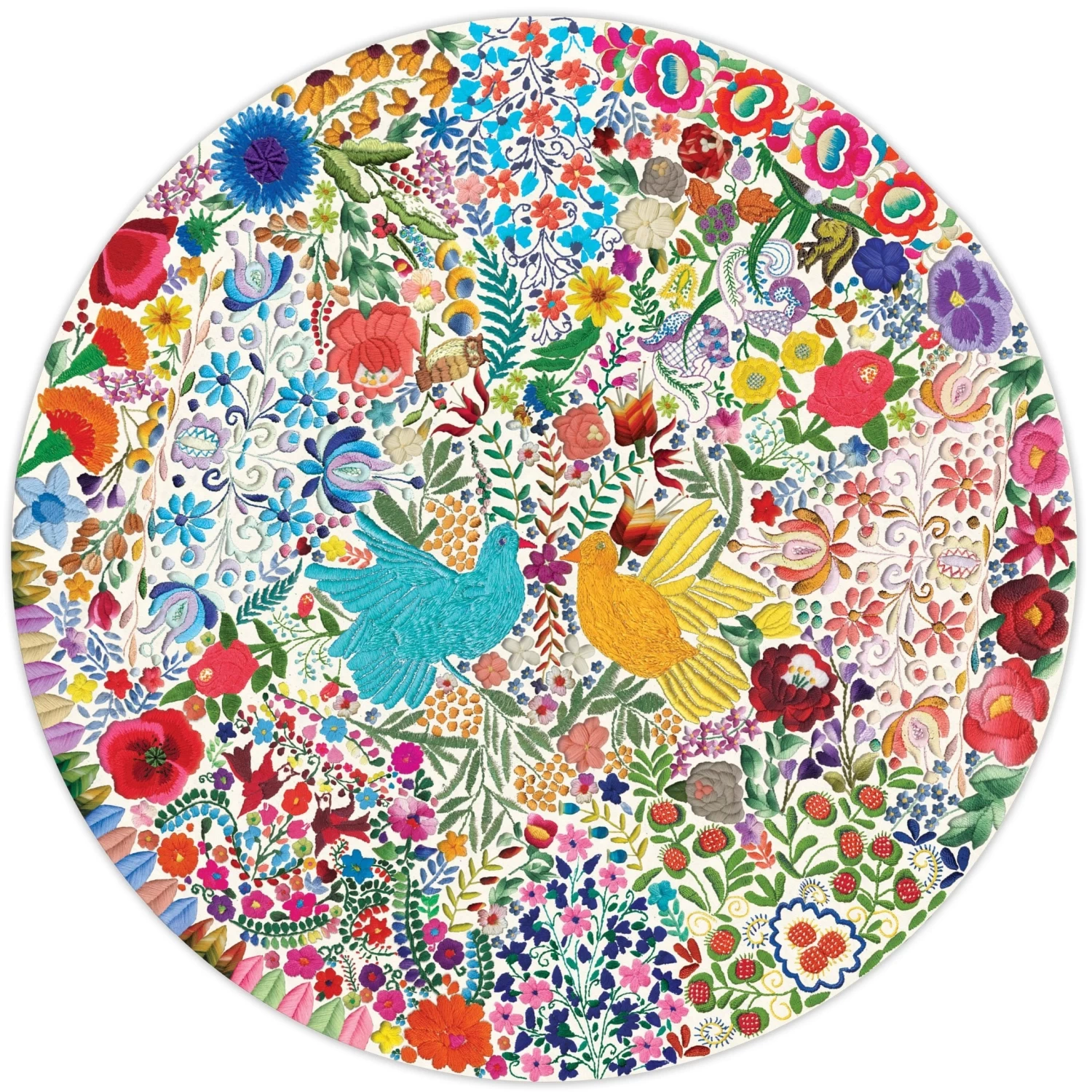 Take on the extra challenge of a round puzzle! This intricate collage of embroideries from around the world will transport any puzzler into focused calm. Made from 90% recycled greyboard and coloured using vegetable-based dyes, it contains 500 pieces.