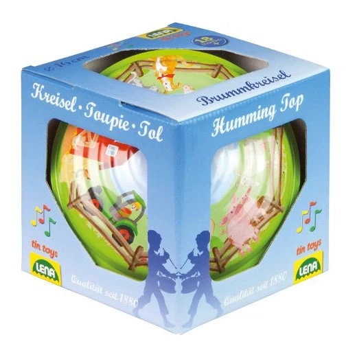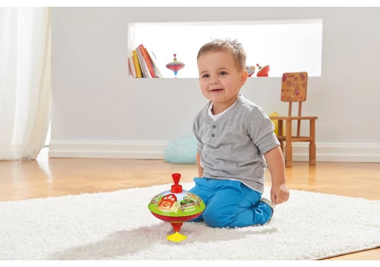 This classic spinning top is an adorable cause and effect toy, perfect for early hand-eye development. Pull and push on the handle and the farm-themed top begins to spin and whirl.