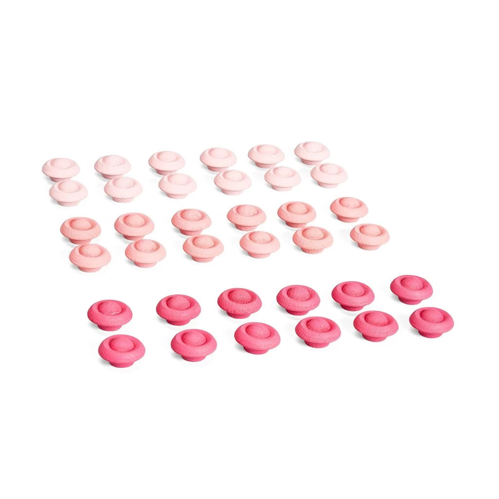 Transient artworks, mandalas and mathematical explorations are enhanced using our Grapat wooden collections – completely adaptable to the child’s phase of development – and they can be used in combination with other materials, such as building blocks, fabric, play dough or during home corner play. Crafted from sustainably sourced wood and coloured with non-toxic dyes, they measure approximately 4cm diameter and come in a set of 36.
