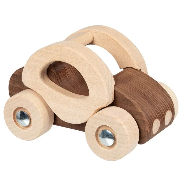 Our sturdy, solid wooden car has movable wheels and it’s ready to race! Made in Europe from solid timber, the Goki Nature range are thermally treated to create the variation in colour without the need for chemicals or varnish.