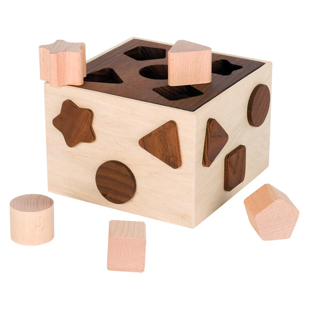 This beautifully crafted shape sorter will delight any toddler. Stimulate sensory awareness while developing hand-eye coordination as young ones place the five shaped blocks into their corresponding holes. Once they are sorted, just lift the lid to retrieve them and start all over again!