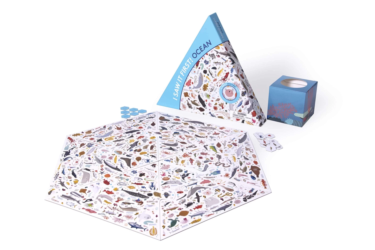 Coming in a triangular box with a hexagonal double-sided board, I Saw It First! Ocean features charming illustrations by Caroline Selmes. Simple to understand but addictive to play, this fun and challenging game will delight adults and children alike.