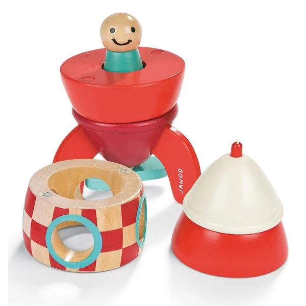 This cleverly designed rocket combines puzzles with play! Made from wood with magnetic connectors, it comes apart into 5 pieces and is oh so enticing to click back together. Complete with a movable propeller, it is also a perfect addition to vehicle and space play scenes.