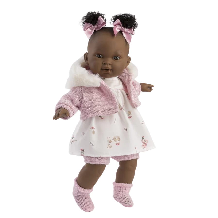 Made with love, care and the finest attention to detail, Polly is an exquisite, special doll, sure to be loved by your little one. Designed and made in Spain, she has a soft body and vinyl limbs, allowing her to be cuddled and cradled like a real baby. Bringing even more authenticity to imaginative play, Polly cries, and says ‘mama’ and ‘papa’ but is soothed with her dummy or by soft gentle snuggles.