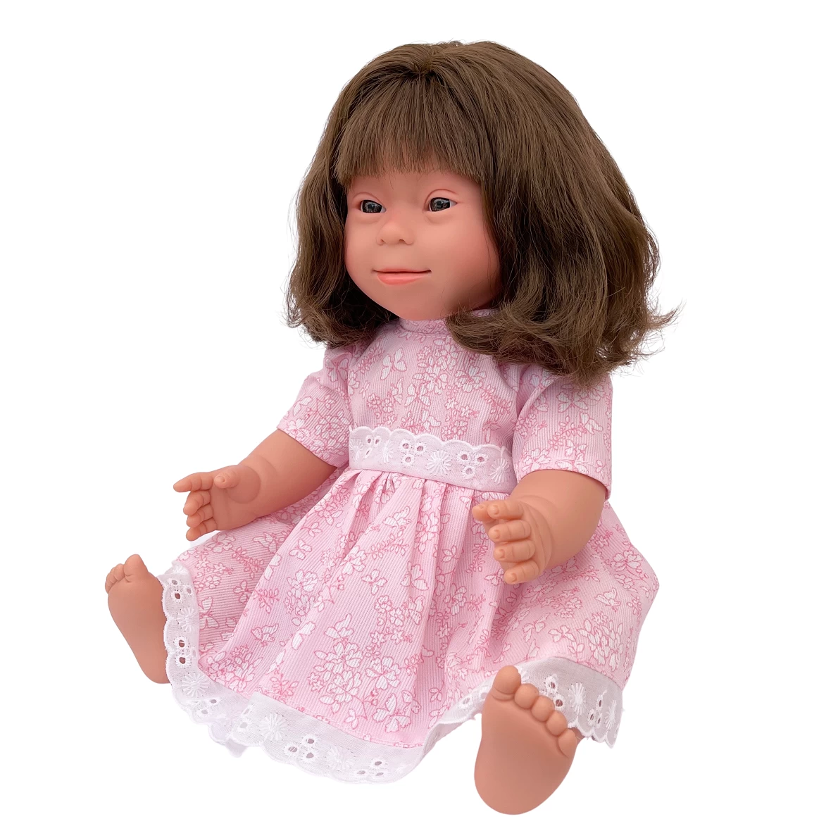 Featuring smooth, brushable hair, bright, clear eyes and a deliciously soft ‘skin’, these beautiful, anatomically correct dolls with Down syndrome foster inclusion, acceptance and love. Made in Spain, and measuring 38cm long, they have moveable limbs, allowing them to sit upright or lay down, bringing authenticity to imaginative play.