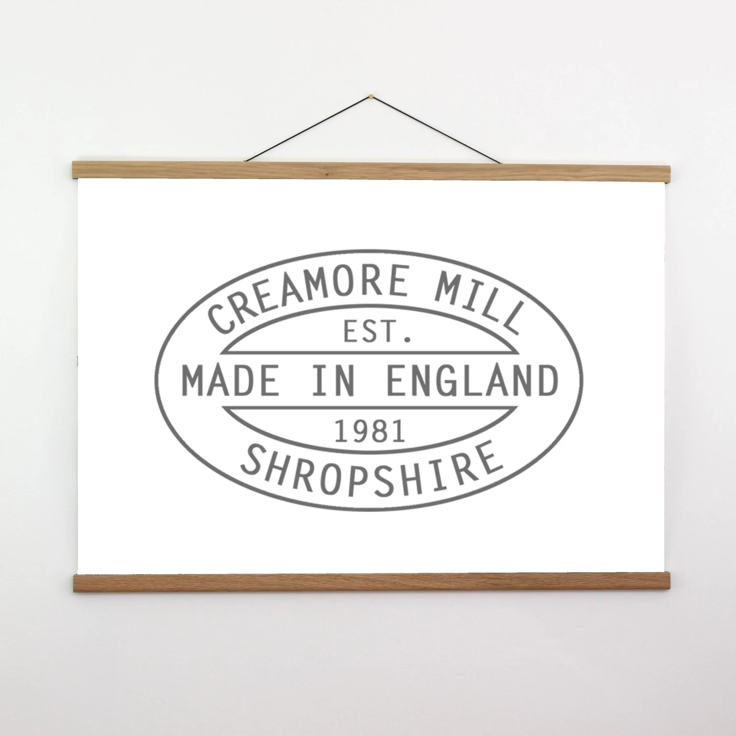 Swap your posters and prints over with ease with Creamore Mill’s magnetic hanging kits. Oak fronted bars are backed with strong magnetic grips, designed to work with any poster, print or photograph and even fabrics! Poster-friendly; requiring no adhesive tape or pins, this hanger set is infinitely reusable and quick to change. A fixed cord is attached to the top rail, and a brass headed picture pin is included.