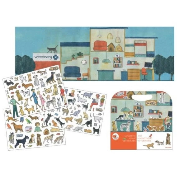 This beautifully presented magnetic playset features a fold-out veterinary scene with over 100 individual pieces. Place the animals in the waiting or observation rooms for hours of creative fun!