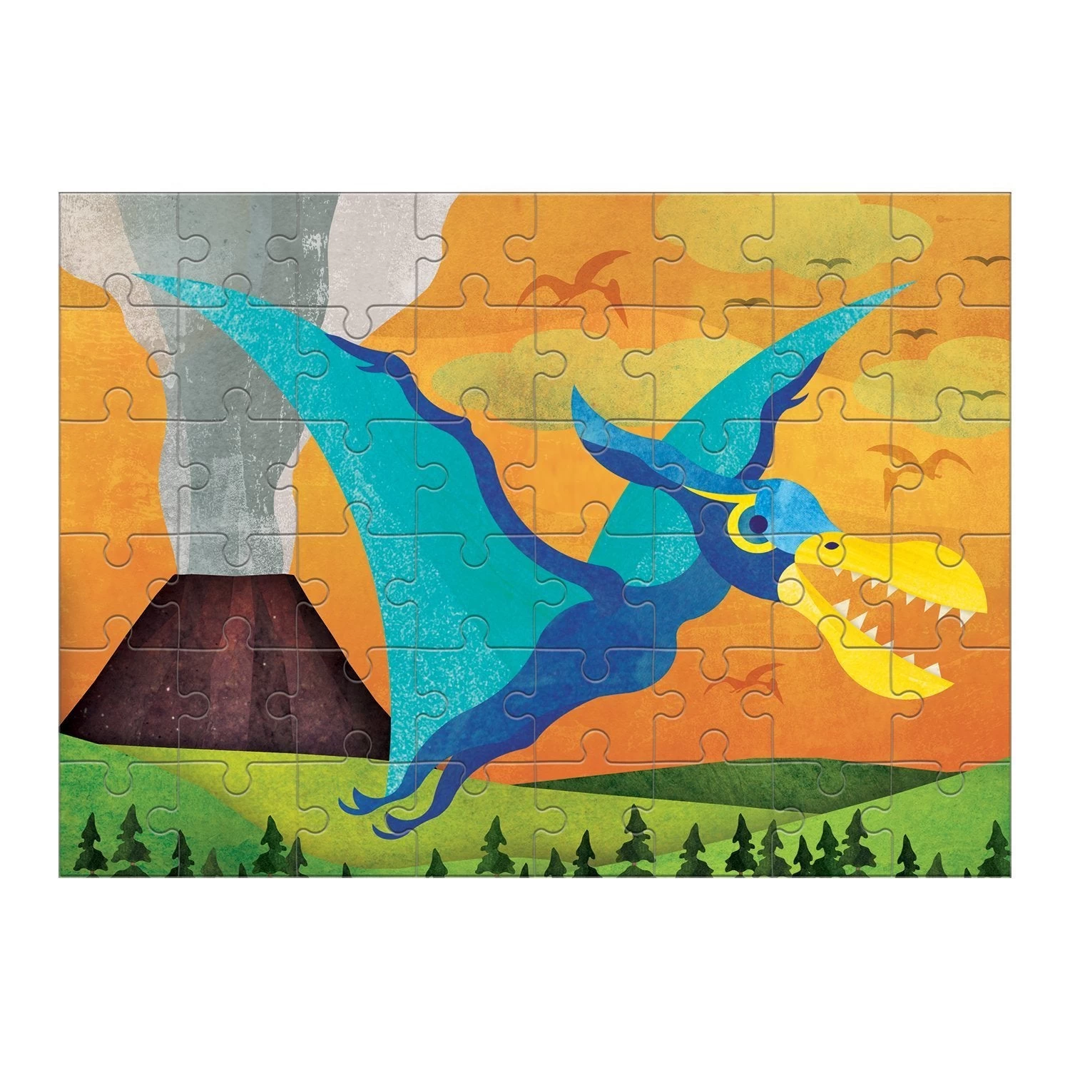 This 48-piece mini puzzle features a colourful image of a Pterosaur. Measuring 20 x 14.5cm when complete, it is compact for traveling, and also includes a two-sided insert with fun facts about this incredible dinosaur!