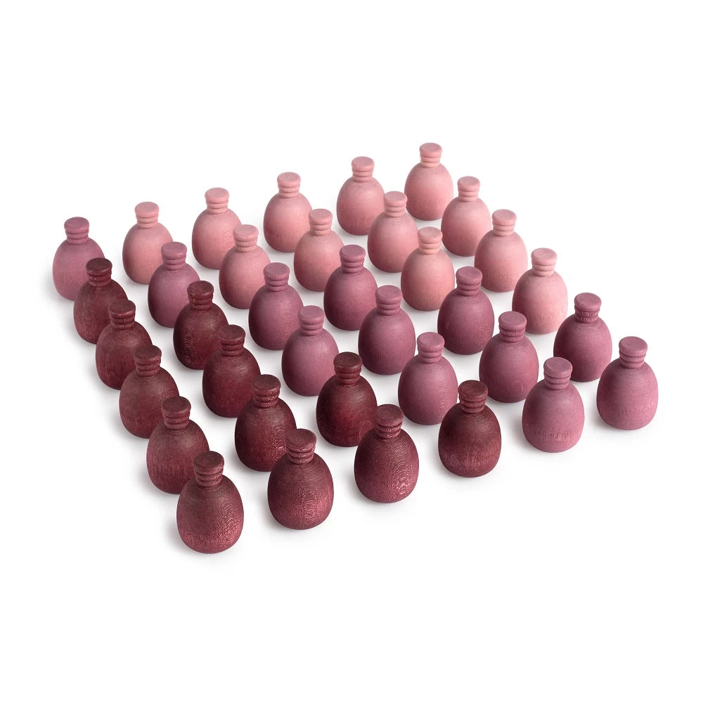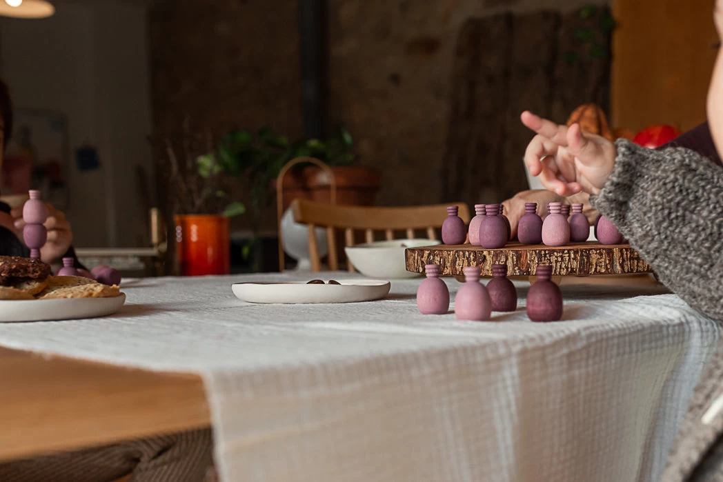 Transient artworks, mandalas and mathematical explorations are enhanced using our Grapat wooden collections – completely adaptable to the child’s phase of development – and they can be used in combination with other materials, such as building blocks, fabric, play dough or during home corner play. Crafted from sustainably sourced wood and coloured with non-toxic dyes, they measure approximately 3.2cm tall and come in a set of 36.