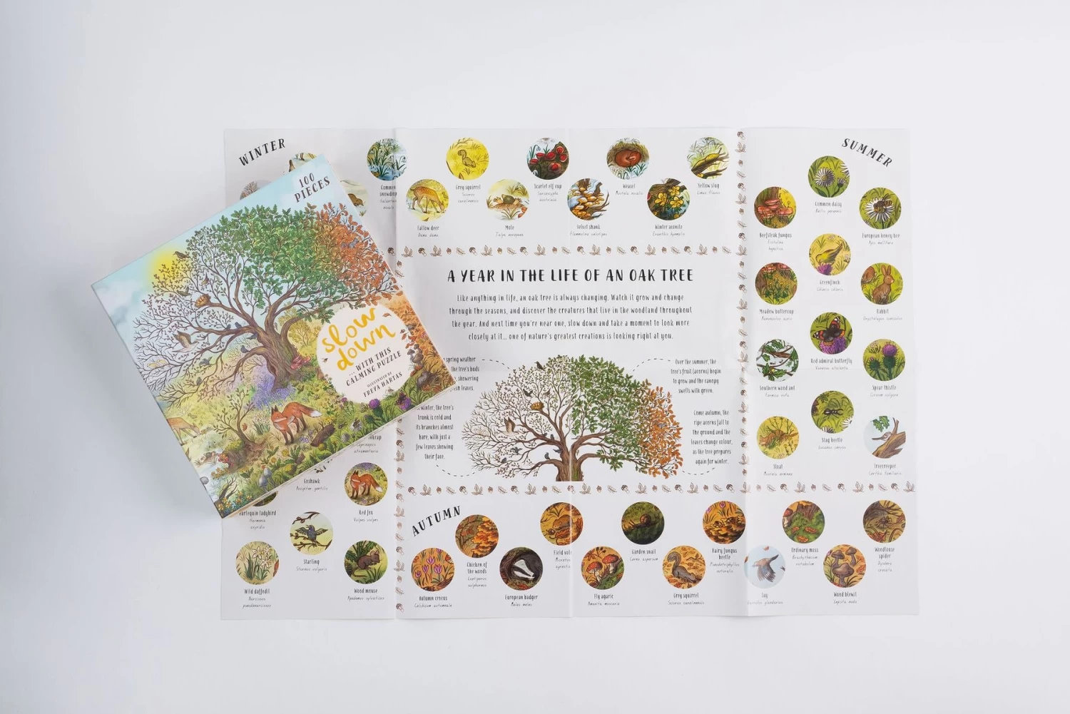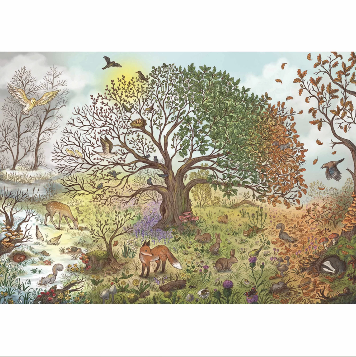 Piece together a fascinating visual exploration of the natural world. Featuring all new artwork of an oak tree and its animals through the seasons, this jigsaw puzzle will open your eyes to new ways of seeing the world around you. Be amazed, piece by piece, as the wonders of the seasons unfold.