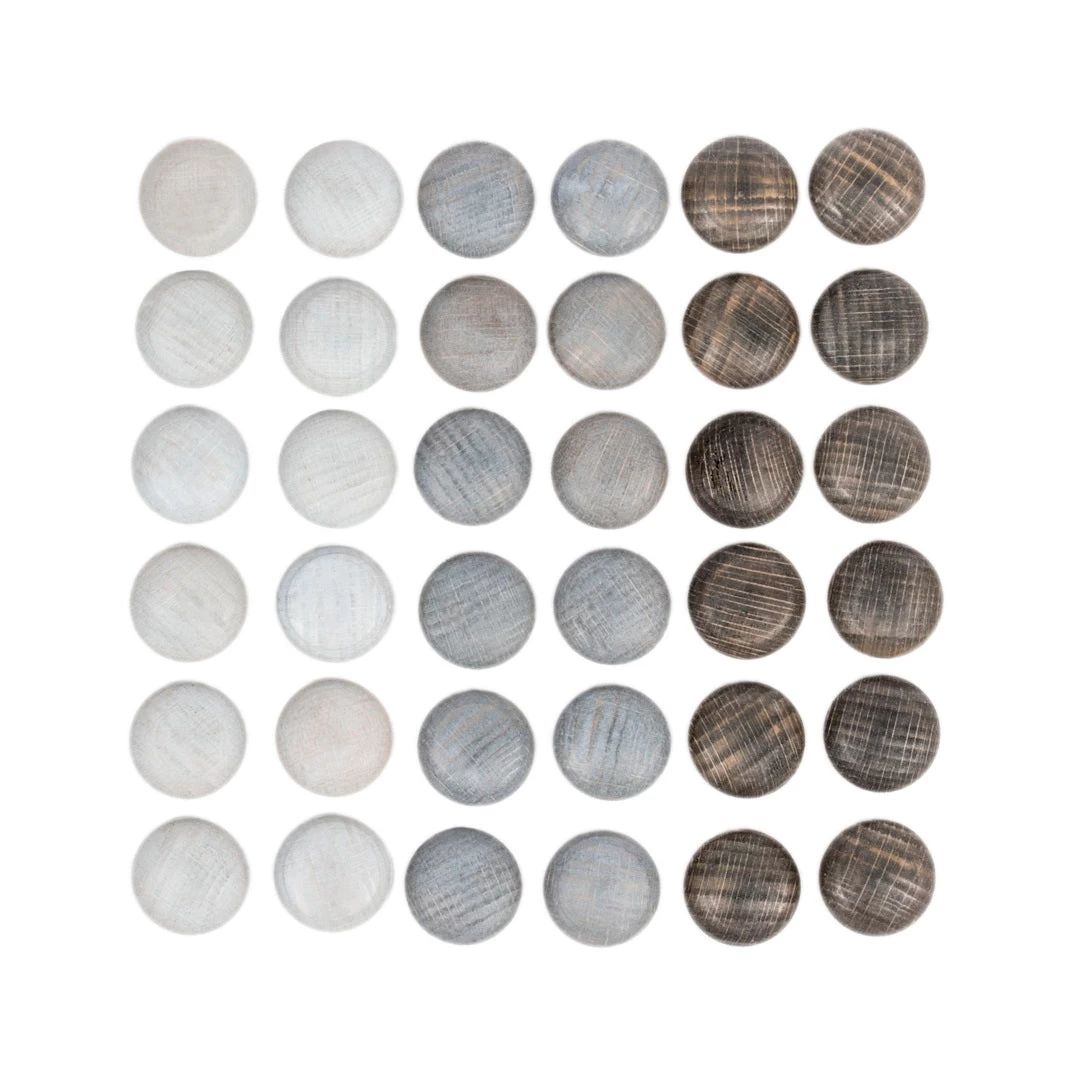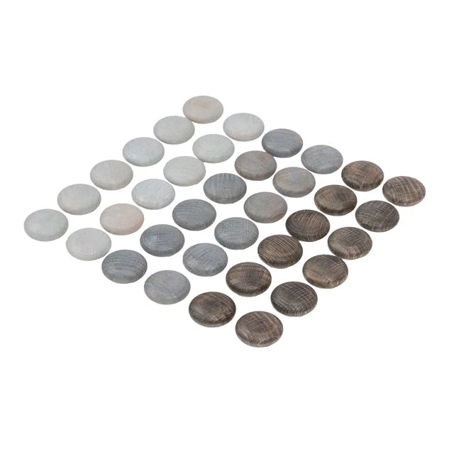 Transient artworks, mandalas and mathematical explorations are enhanced using our Grapat wooden collections – completely adaptable to the child’s phase of development – and they can be used in combination with other materials, such as building blocks, fabric, play dough or during home corner play. Crafted from sustainably sourced wood and coloured with non-toxic dyes, they measure approximately 3cm in diameter and come in a set of 36.