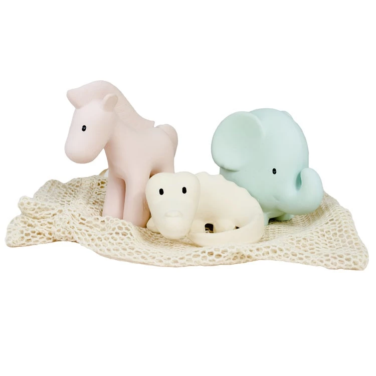 An adorable collection of 3 all rubber teethers that are great for little hands to grab and squeeze. This set comes with a crocodile, horse and elephant all in a pastel colours, ideal for keeping your little one entertained during bath time and for teething relief.