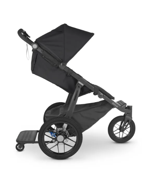 UPPAbaby RIDGE PiggyBack Ride-Along Board easily attaches to the back of your RIDGE pram to allow your toddler to join in the stroll, even when they are too tired to walk on their own.