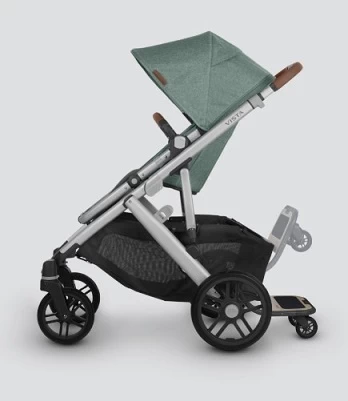 The Uppababy Vista Piggyback Board allows your toddler to comfortably join in the stroll, as it attaches to the back of your VISTA Stroller with a quick snap on and off attachment.