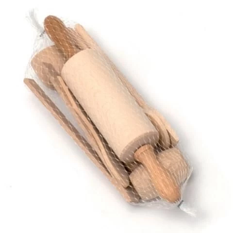 This beautiful collection of wooden utensils will make playtime in the home corner or mud kitchen all the more special. This set of nine includes a rolling pin, mallet, stamper, whisk, spoon, beater, tongs, spatula and scraper; all tools your little one requires to delve deep into some engaging make-believe play.